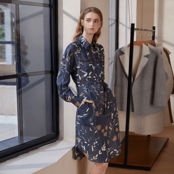 100% Silk Long-Sleeved Printed Dress