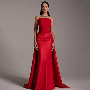 Elegant Red Strapless Mermaid Evening Dress with Overskirt