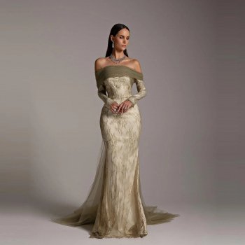 Elegant Green Off-Shoulder Mermaid Evening Dress with Overskirt