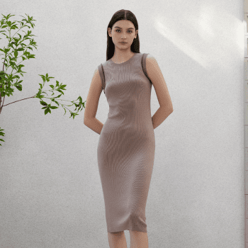 Merino Wool Silk Slim Fit Knitted Long Dress